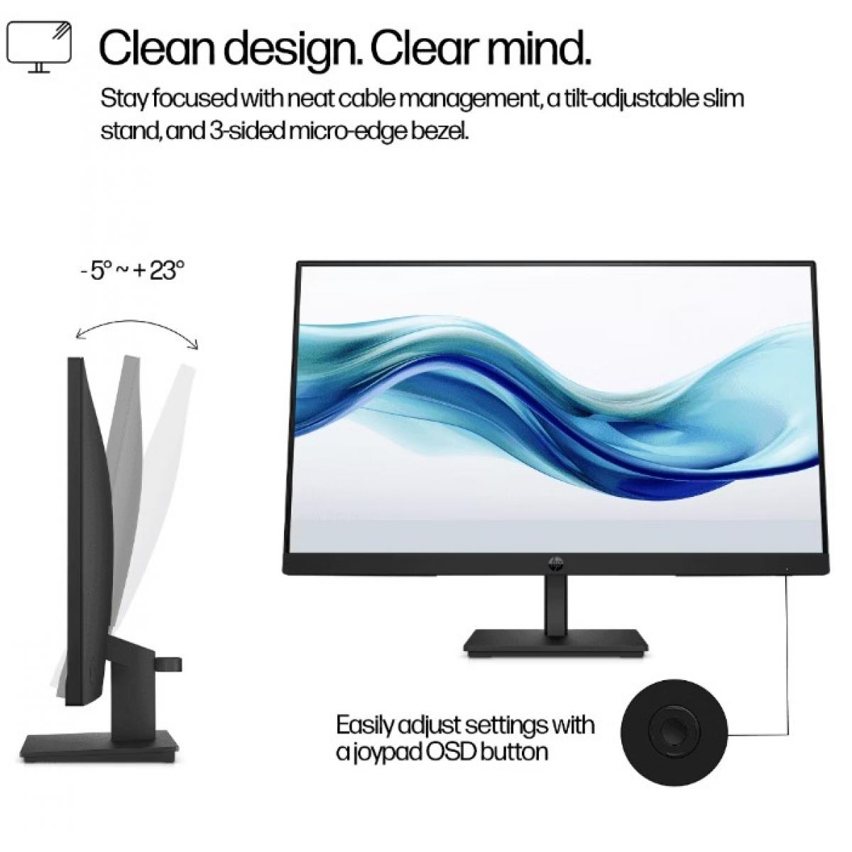 توفر شاشة HP 327pe 27" IPS Full HD Monitor تجربة عرض واسعة وواضحة بفضل حجم الشاشة الكبير 27 بوصة بدقة Full HD (1920×1080)، مما يجعلها مناسبة للعمل المكتبي، تصفح الإنترنت، ومشاهدة المحتوى.