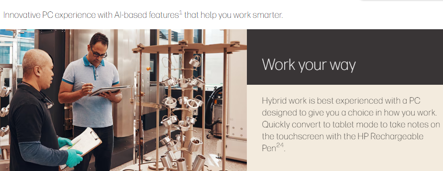 كما يدعم الجهاز أحدث تقنيات الاتصال مثل Wi-Fi 6E ويوفر ميزات أمان متقدمة مثل قارئ بصمة الإصبع ولوحة مفاتيح مضاءة خلفيًا، مما يعزز الأمان وسهولة الاستخدام.